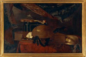 - NOTIZIE STORICO CRITICHE Non si conosce l'origine dell'opera che in passato non ha goduto di grande fortuna critica. Il complesso schema compositivo, che sottende l'insieme figurativo porta a datare l'opera al settimo decennio del Seicento, in una fase di attività dell'artista definita dagli studiosi "barocca", per la ricchezza di schemi proposti e adottati dal pittore. Gli strumenti sono coperti dalla polvere a sottolineare il non uso e quindi il tempo che passa inesorabile a rendere vana l'opera dell'uomo. La quiete significa "vanitas vanitatum". La luce particolarmente avara potrebbe avere fatto valutare la tela come meno suggestiva di altre. (Olivari, 2007)