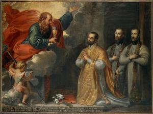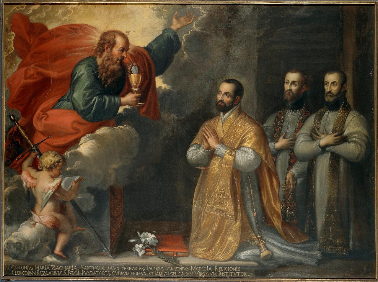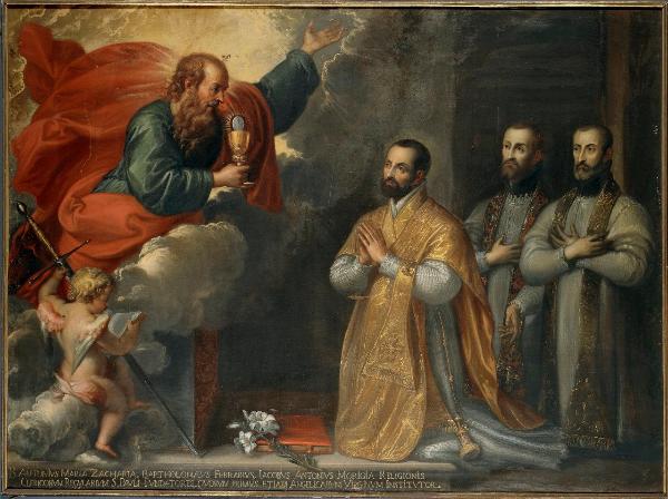 San Paolo porge l'Eucarestia a Sant'Antonio Maria Zaccaria, Bartolomeo Ferrario e a Giacomo Antonio Morigia, fondatori dei Barnabiti. San Paolo porge l'Eucarestia a Sant'Antonio Maria Zaccaria, Bartolomeo Ferrario e a Giacomo Antonio Morigia, fondatori dei Barnabiti