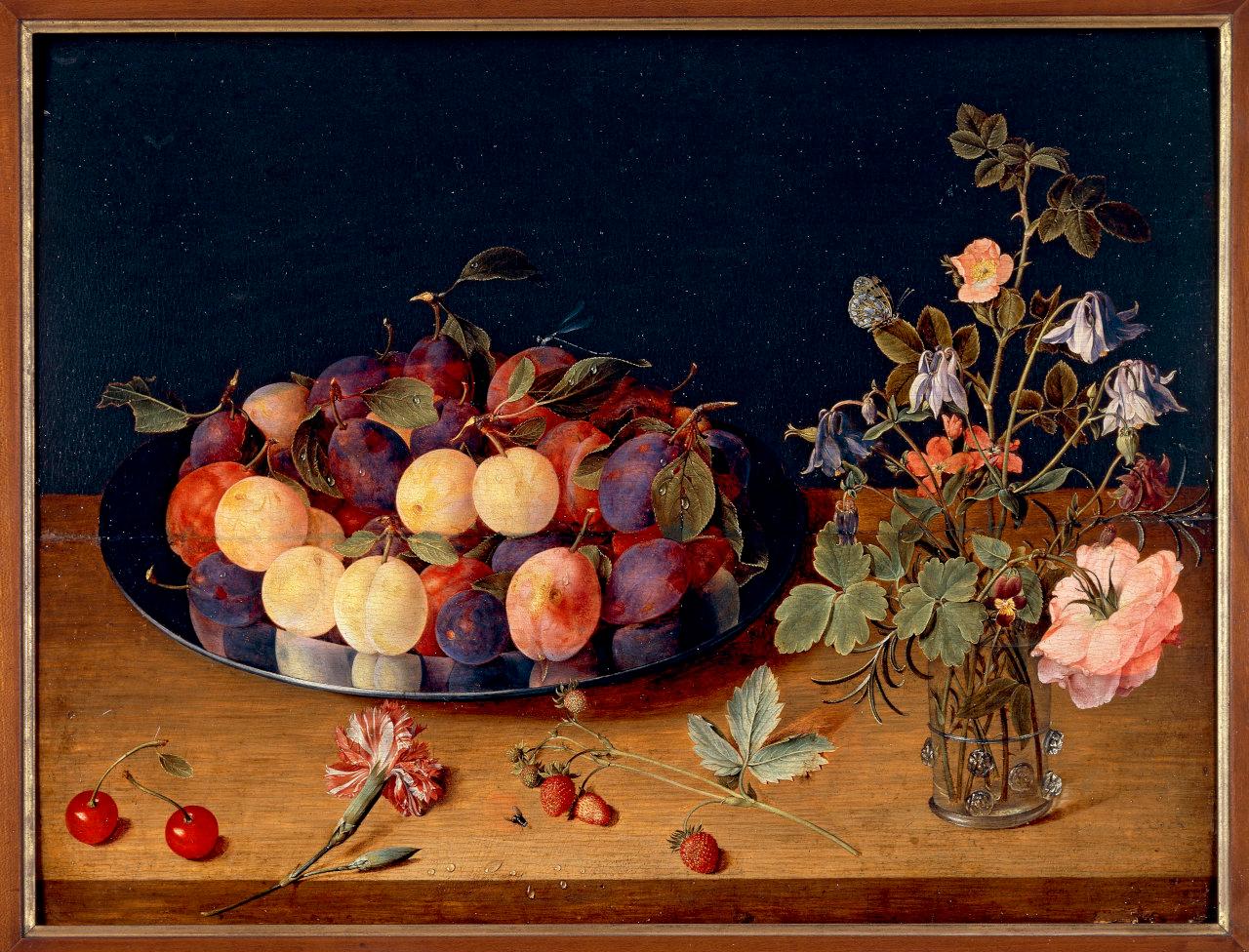 Natura morta con frutta e fiori. natura morta con frutta e fiori