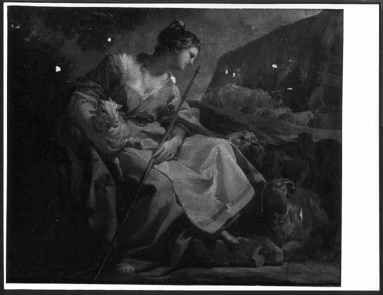 Giovane pastorella seduta con caprette. giovane pastorella seduta con caprette