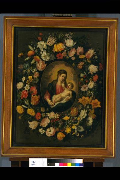 MADONNA CON IL BAMBINO IN UNA GHIRLANDA DI FIORI