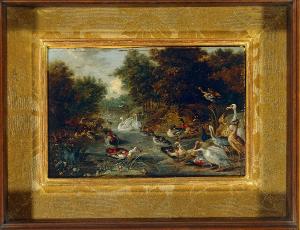 Paesaggio con uccelli. volatili in una palude