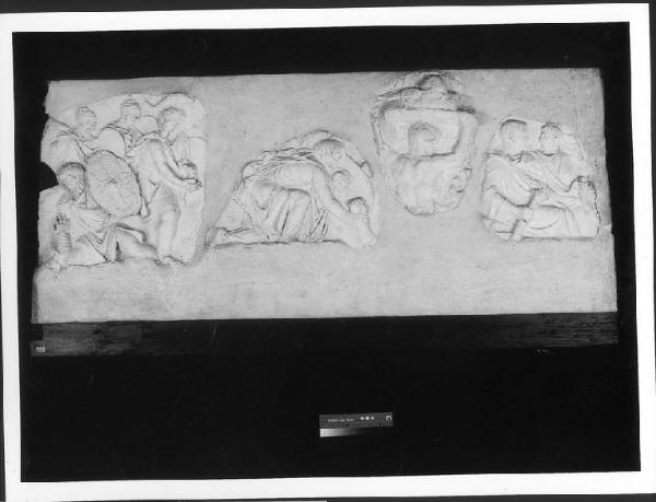 • NOTIZIE STORICO CRITICHE Federico Borromeo si era procurato per l'Accademia del Disegno numerosi calchi in gesso, in parte anche dagli eredi di Leone Leoni . Fra questi vi erano anche quelli realizzati dal Primaticcio a Roma intorno al 1540 -1545 per la residenza di Francesco I a Fontainebleau tra i quali, secondo il Vasari, "una gran parte delle storie della Colonna". I calchi presenti in Ambrosiana potrebbero dunque essere quelli eseguiti o replicati dal Primaticcio. Le opere, documentate dal Bosca nel 1672, potrebbero anche essere comprese fra i "pleraque fragmenta" con cui Federico Borromeo nel Museum (1625) chiude l'elenco delle sculture antiche. L'inventario del 1685 nell'elenco dei "Modelli di diverse parti del corpo umano dispersi per la Galleria [delle Sculture] in luoghi vari", come 34 pezzi di medaglie copiate dalla colonna traiana.