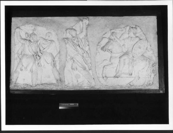 • NOTIZIE STORICO CRITICHE Federico Borromeo si era procurato per l'Accademia del Disegno numerosi calchi in gesso, in parte anche dagli eredi di Leone Leoni . Fra questi vi erano anche quelli realizzati dal Primaticcio a Roma intorno al 1540 -1545 per la residenza di Francesco I a Fontainebleau tra i quali, secondo il Vasari, "una gran parte delle storie della Colonna". I calchi presenti in Ambrosiana potrebbero dunque essere quelli eseguiti o replicati dal Primaticcio. Le opere, documentate dal Bosca nel 1672, potrebbero anche essere comprese fra i "pleraque fragmenta" con cui Federico Borromeo nel Museum (1625) chiude l'elenco delle sculture antiche. L'inventario del 1685 nell'elenco dei "Modelli di diverse parti del corpo umano dispersi per la Galleria [delle Sculture] in luoghi vari", come 34 pezzi di medaglie copiate dalla colonna traiana.