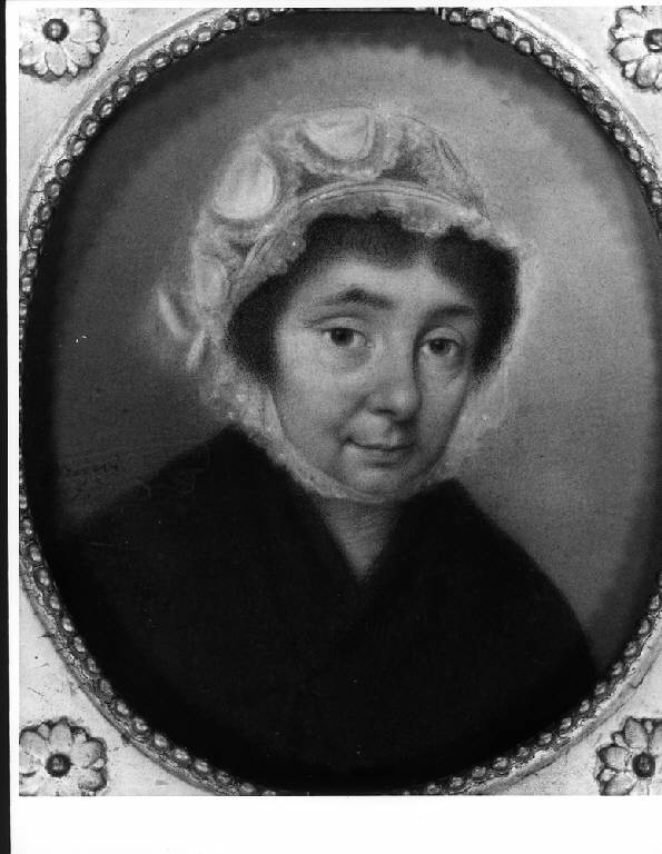 - NOTIZIE STORICO CRITICHE Il ritratto fa parte di una serie di 24 quadretti (di cui 5 di Francesco Bruni ed i restanti di Giovanni Pock) donati dalla contessa Teresa Dugnani all'Ambrosiana nel 1845, mentre non si conosce il momento in cui i ritratti entrarono nella collezione Dugnani.\nI quadretti furono eseguiti a Milano e rappresentano personaggi della nobiltà locale ed ecclesiastici di fine Settecento e primo Ottocento. \nLa realizzazione dei ritratti di Pock avvenne dopo il 1825, data d'arrivo a Milano dell'artista, mentre per quelli del Bruni la datazione può essere ristretta tra gli anni 1819 e 1821, date che si riscontrano sotto la firma dell'artista in due quadretti.\nIl Galbiati (1951) parla di 26 ritratti appesi agli angoli della Sala Pastorale o del Londonio (allora Sala XXI), 21 del Pock e 5 del Bruni, pertanto devono essere andati persi 2quadretti del Pock (raffiguranti il marchese Francesco Casati e il presidente Della Porta).