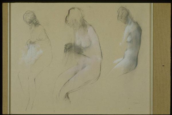 Tre figure femminili nude sedute; di profilo, rivolte verso sinistra