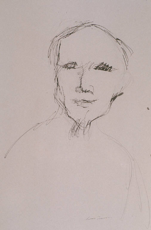 - NOTIZIE STORICO CRITICHE Secondo la comunicazione orale di Angela Candiani, il disegno raffigura Ho Chi Minh, storico rivoluzionario e infine presidente del Vietnam settentrionale (2000, Candiani Angela, com. or.).\nIl foglio non è datato ma è molto probabile che il ritratto sia legato alla pubblicazione del libro "La storia di Ngujen Van Troi", di Tran Dinh Van, illustrato con tre acquarelli e un disegno di Treccani ed edito per iniziativa delle Federazioni Provinciali del P.C.I. nel 1966.\nA quella data la storia del Vietnam era già da tempo sulle pagine di tutti i giornali a causa dell'invasione della parte settentrionale del paese da parte degli Stati Uniti nel 1964. Ho Chi Minh, ormai anziano, non rinunciò allora a combattere l'ultima guerra contro gli invasori.\nLa linea di impegno civile può essere dunque ancora rintracciata, nel lavoro di Treccani, anche in seguito al 1956, quando gli eventi politici, e i fatti d'Ungheria in particolare, segnano nell' evoluzione dell'artista il passaggio dai temi sociali e dai modi espressionistici ad un nuovo lirismo naturalista, che si esprime con un linguaggio quasi informale, fatto di pochi e veloci tratti e tocchi di colore. \nL'utilizzo del disegno come tecnica rappresentativa corrisponde alla nuova esigenza di esprimere in maniera veloce impressioni ed emozioni.\nQuanto al soggetto dei ritratti e dei volti, scrive Luciano Luisi: "E' il modo di Treccani (di quest'uomo che ha fatto della sua vita un impegno totale e coerente), di partecipare attivamente alla vita degli altri. Per questo i ritratti, i volti sono il motivo ricorrente (il riproporsi di una fedeltà spirituale) della sua opera fin dagli inizi; perchè così Treccani assolva la sua vocazione di essere dentro l'uomo, che è il modo più alto di essere dentro la pittura e dentro la società." (Luisi, 1975).\nSui ritratti di Treccani ha scritto anche Leonardo Capano, notando come essi non fissano in termini naturalistici i lineamenti del modello, la sua "singolarità", perchè eseguiti con alcune costanti che "mettono in rapporto" i diversi volti tra loro: "Così in un volto si riflettono "più immagini" (...)". Ad ottenere questo risultato contribuisce anche la tecnica di esecuzione: i ritratti di Treccani non sono mai semplicemente descrittivi perchè "tendono piuttosto a dissolversi, fino al limite dell'astrazione." (Capano, 1989)