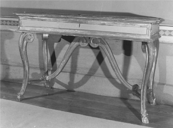 - NOTIZIE STORICO CRITICHE L'arredo realizzato con fattura piuttosto sommaria e materiale grossolano, è una ripresa ottocentesca di motivi decorativi secenteschi ( cfr. il tipo di scrivania "detta S. Filippo" di origine emiliana ) uniti a motivi settecenteschi tipicamente lombardi, cfr. i piedi di capro. Eseguito da artigianato lombardo, probabilmente locale
