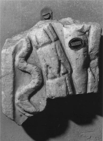 Raffigura probabilmente un frammento di corona di lauro legata da nastri.