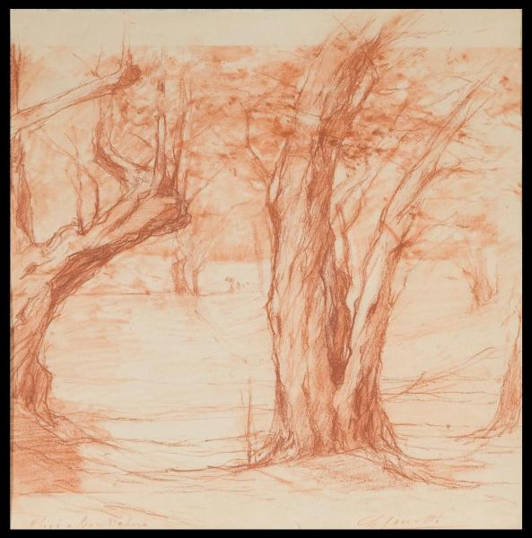 Olivi a Bordighera. Paesaggio con alberi