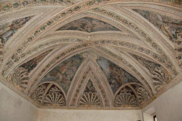 - NOTIZIE STORICO CRITICHE Nell'aprile del 1521, due anni dopo la morte di Francesco II Gonzaga, il primogenito Federico, che nel 1519 non aveva ancora raggiunto la maggiore età ed era salito al potere sotto la tutela della madre Isabella d'Este, assume a tutti gli effetti la guida dello stato. Il nuovo marchese passerà alla storia non solo per il suo opportunismo politico bensì anche per il suo talento di collezionista e committente ed in particolare per aver voluto a Mantova Giulio Romano, che per più di vent'anni detterà legge artistica alla corte dei Gonzaga, orientando il gusto dell'intera città sulle rive del Mincio. Sotto la sua stella, nei sogni del principe, Mantova sarebbe dovuta diventare una nuova Roma e, di conseguenza, uno dei centri propulsivi della maniera moderna. Secondo la tradizione degli studi, gli interventi di Giulio Romano in Palazzo Ducale possono essere distinti in due fasi. La prima, cominciata e conclusa nel 1531, riguarderebbe solo la sistemazione del doppio appartamento in Castello e la costruzione della Palazzina destinata alla sposa; la seconda, svolta tra il 1536 e il 1539, riguarderebbe, invece, la realizzazione del cosiddetto Appartamento di Troia in Corte Nuova e la fabbricazione dell'edificio della Rustica, di fronte alla loggia del nuovo appartamento di rappresentanza, al di là del Prato della Mostra (RAGOZZINO 2003, pp. 151-156).\nL'appartamento della Mostra è ricavato nella palazzina denominata la Rustica. La fabbrica proseguì anche sotto il breve ducato di Francesco III e poté dirsi conclusa solo nel 1561. Gli interni decorati a stucchi e pitture sono databili agli anni Sessanta del Cinquecento; appartengono cioè al ducato di Guglielmo e sono attribuiti a Fermo Ghisoni, Lorenzo Costa il Giovane e ad altri artisti mantovani diretti da Giovanni Battista Bertani, autore delle invenzioni. La Sala dei Pesci, detta anche del Pesce o di Nettuno, è una stanza decorata negli angoli con grandi figure di Tritoni e cavalli marini, opera di Lorenzo Costa il Giovane; bellissimi trofei di pesci, crostacei e piante acquatiche, attribuiti ad altra mano, ornano gli spazi triangolari delimitati da conchiglie e festoni di stucco incrostati da simili motivi policromi (BERZAGHI 1992, pp. 51-53 ).\nDedicata a Nettuno, la stanza dovrebbe contenere, stando a Raffaello Toscano, le trasformazioni e gli amori del dio del mare, forse ricocnoscibili nei compoartiangolari dipinti a olio su muro. Disegni preparatori, o copie, agevolano una più chiara lettura di tre scene: il Tritone su cavallo marino con buccina, noto da una copia degli Uffizi e da una a Storrs e presente nell'album di disegni di Arezzo attribuito a Bartolomeo o Teofilo Torri, il Tritone e due delfini, autografo di Bertani (Venezia, Accademia e copia nell'Album di Arezzo), e Nettuno col tridente (New York, Komor Collection). Ancora discretamente leggibile è lo scomparto romboidale al sommo della volta (Putti alati con tridente). E' scomparso il camino marmoreo descritto da Aldrovandi, che ricorda "un serpe lunghissimo con un tridente involto in esso, fatto di marmore veronese" da "un certo magistro Giovanni Battista che sta in Roma", che si è supposto corrispondere a Giovan Battista della Porta (BERZAGHI 2003, p. 227).