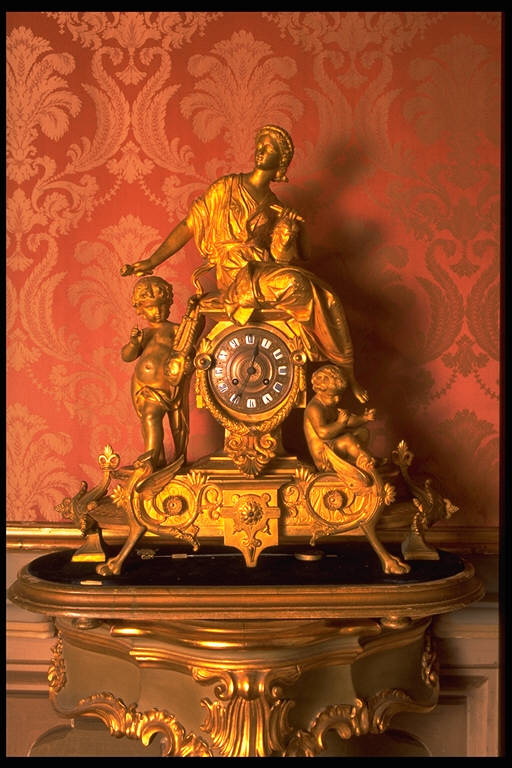 Orologio in bronzo dorato conservato sotto una campana di vetro