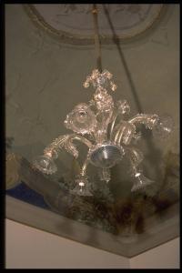 Lampadario in vetro di Murano a cinque calici rivolti verso il pavimento