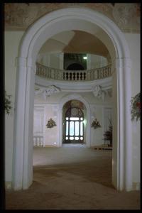 Passaggio centrale voltato a tutto sesto con cornice sagomata
