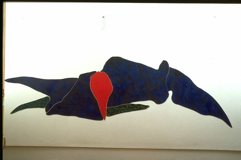 - NOTIZIE STORICO CRITICHE L'opera si caratterizza per la proposta di una raffigurazione di superficie, di porzioni di forme organiche campite con squillante cromia, pronte ad incastrarsi le une nelle altre come per comporre una squisita tarsia, come si trattasse di aquiloni, leggeri ed aerei, decisi a comunicare la propria gioiosa animazione.\nQuest'opera è inseribile nell'ambito della produzione nei Nuovi-nuovi, gruppo di cui l'artista entra a fare parte dalla fine degli anni Settanta, esponente di punta della componente aniconica.\nL'artista è nato nel 1944 a Pegognaga (Mantova). Dal 1968 al 1970 si dedica a performances fondate su gesti minimali, e ad opere di studio e ricerca sul tema del corpo. Espone in questo periodo a Verona, Como, Milano e Bologna. Nel 1977 si colloca la sua "fase nera", priva di colore, grafica, volutamente inespressiva di "Dov'è Pontormo?" . Il distillare del tempo, il misurare lo spazio, il contrasto tra rigore concettuale e afasia espressiva sono interrotti negli anni Ottanta dal ritorno alla pittura: il colore, elemento nuovo, pervade tutto lo spazio dell'installazione. Attorno al 1980 dissemina gli spazi espositivi di "Trappole", i congegni dell'impossibile gioco dell'arte. Nello stesso tempo opera una contaminazione linguistica con gli strumenti tecnologici mediali nellopera. Dal 1984 fa farte del gruppo dei Nuovi-nuovi.
