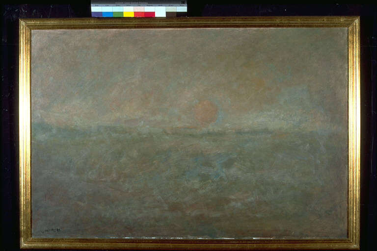 - NOTIZIE STORICO CRITICHE L'opera entra nella collezione della Galleria in occasione della mostra personale del 1999.\nLa produzione pittorica di Valenza si articola per grandi temi naturalistici fondamentali: quest'opera fa parte della serie dedicata al paesaggio , che fornisce il pretesto per uno studio accuratissimo sugli effetti luministici dell'ora del tramonto, che presagisce il notturno (altro dei temi preferiti dall'artista). Qui una luce calda , ma delicata, tenue, s'insinua nella radura, facendo perdere di vista i confini tra cielo e terra, tutto avvolgendo , e giocando a mettere in risalto alcuni punti con una pennellata più chiara e veloce.\nL'artista nasce nel 1920 a Torricella (MN). Dopo la Seconda Guerra Mondiale, studia disegno ai corsi serali che si tengono a Suzzara. Dagli anni Sessanta inizia una intensa e costante partecipazione a mostre estemporanee. Nel corso del decennio successivo decisivo è l'incontro con William Tode, con il quale crea il gruppo "Valori Plastici" all'insegna dell'impegno sociale. E' questa la fase più "espressionista" della sua pittura. Successivamente, l'artista pare abbandonare questa vena drammatica , e ritrovare le proprie origini, essenzialmente liriche. Continua la sua insistente partecipazione a manifestazioni artistiche in tutt'Italia, ove vince numerosi premi.