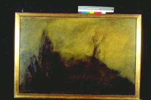 - NOTIZIE STORICO CRITICHE L'opera entra nella collezione della Galleria in occasione della mostra personale del 1999.\nE'qui evidente un forte contrasto tra due tonalità, non solo di colore, ma anche di ambientazione: da una parte il nero, come spettro di tutti gli altri colori, che assorbe tutti in se' ma che contemporaneamente annulla, creando una parvenza di figura , o di figure, come un fantasma, che si rende un attimo visibile, ma subito scompare nel nero del ricordo, come recita il titolo. Dal nero si diparte anche l'albero, unico elemento paesaggistico, che però proietta i suoi rami, sui quali è dato individuare un inizio di germogliazione , nell'area dell'altro colore fondamentale della composizione: l'ocra, il colore che qui viene ad assumere il cielo. E' un cielo dolente, in cui anche il sole sembra voler nascondersi, che avvolge tutto il dipinto in un'aura evocativa e malinconica.\nL'artista nasce nel 1920 a Torricella (MN). Dopo la Seconda Guerra Mondiale, studia disegno ai corsi serali che si tengono a Suzzara. Dagli anni Sessanta inizia una intensa e costante partecipazione a mostre estemporanee. Nel corso del decennio successivo decisivo è l'incontro con William Tode, con il quale crea il gruppo "Valori Plastici" all'insegna dell'impegno sociale. E' questa la fase più "espressionista" della sua pittura. Successivamente, l'artista pare abbandonare questa vena drammatica , e ritrovare le proprie origini, essenzialmente liriche. Continua la sua insistente partecipazione a manifestazioni artistiche in tutt'Italia, ove vince numerosi premi.