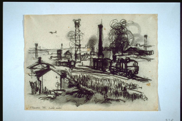 - NOTIZIE STORICO CRITICHE Alla VIIIa edizione del Premio Suzzara (1955) vinse un servizio da cognac, una cassetta per colori e quattro bottiglie di liquori.\nStile descrittivo di stile abbastanza tradizionale, ma caratterizzato da un disegno veloce che non si sofferma sui particolari.\nL'artista nasce a Milano nel 1929.Studia all'Accademia di Brera. Comincia ad esporre nei primi anni Cinquanta. Le opere che dipinge tra il 1956 ed il 1959 rientrano nell'ambito della Nuova figurazione come la serie delle macellerie, quella degli interni (gabinetti, scale, cucine di abitazioni popolari e dismesse) e quelle delle case in rovina o degli edifici sventrati dai bombardamenti. Negli anni Sessanta svolge opere ispirate all'osservazione degli scheletri di animali e delle ciminiere di una nave. Per le opere degli anni Settanta, invece, si ispira ad eventi di cronaca il cui comun denominatore è la violenza: una collisione, i rottami di un'automobile dopo un incidente, una casa distrutta da un bombardamento in Medio Oriente etc. Durante tutta la sua produzione rimane costante il tema della figura femminile. Partecipa alla Biennale di Milano, alla Biennale dell'Incisione italiana contemporanea di Venezia, alla Triennale dell'Incisione di Milano, alla mostra "Realismo esistenziale" del 1991.