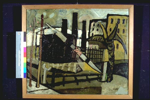 - NOTIZIE STORICO CRITICHE Alla II edizione del Premio Suzzara (1949) vinse 100 bottiglie di vino\nDisegno volutamente infantile che fa rientrare l'opera nell'ambito della pittura neoprimitivista\nNato a Mosio nel 1918 l'artista mantovano frequentò la città di Parma avvicinandosi in gioventù al maestro Carlo Mattioli ed altri artisti famosi del tempo. \nAl ritorno dalla campagna di Russia, Salvadori intrattiene frequenti contatti con gli artisti italiani più importanti del dopoguerra: Carrà, Birolli e Guidi. Giulio Salvatori, attraverso dipinti, disegni e bassorilievi ha testimoniato la migliore espressione artistica del secolo .