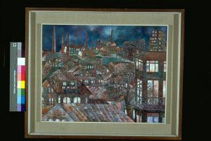 Notturno sulle ciminiere. Veduta cittadina di notte