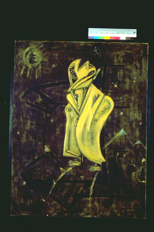 - NOTIZIE STORICO CRITICHE Al Premio Suzzara 1990 sostituisce l'opera grafica vincente di analogo soggetto.\nOpera che fa riferimento al neoprimitivismo espresso in un linguaggio di grande modernità \nL'artista è nato nel 1946 a Nave (Brescia), vive e lavora a Prato. Operaio elettricista, a vent'anni frequenta l'Accademia di Firenze. Nel `75 si trasferisce a Prato, dove per vivere è costretto a svolgere lavori precari. Negli anni `80 riprende a dipingere e a disegnare con più regolarità.\nLa sua prima mostra è organizzata dalla Galleria dell'Incisione di Brescia nel `75. Con il sostegno di Giuseppe Bergomi e Vittorio Sgarbi, Paolo Baldacci e Philippe Daverio lo invitano ad esporre per "Primavera `89" alla Galleria Jannone di Milano. Nel `90 vince il XXX Premio Suzzara; nello stesso anno Vittorio Sgarbi organizza una retrospettiva a Palazzo Pretorio, a Prato. Nel `91 Sgarbi presenta un gruppo di opere al Palazzo delle Esposizioni di Roma e l'artista è invitato alla IX rassegna Nazionale d'Arte Contemporanea "Proposte d'Arte 1991" a Piacenza. Nel `94 Alessandra Ottieri, Roberto Carifi e Fabrizio Desideri presentano l'opera grafica "Tra Giobbe e Saturno" con testo di Fabrizio Desideri alla Libreria Seeber di Firenze. Nello stesso anno Saiani espone alla Galleria dell'Officina di Brescia, e nel `99 alla Galleria Poggiali & Forconi di Firenze, presentato da Marco Vallora.