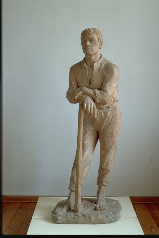 - NOTIZIE STORICO CRITICHE Al VIII° Premio Suzzara vinse £ 50.000 in contanti, un fornello a gas e 50 litri di benzina.\nLa scelta del soggetto millettianamente ispirato alla realtà contadina, l'uso di un materiale povero e il tipo di descrizione "veristica", che mira a conferire dignità di classe al lavoratore, inseriscono l'opera nell'ambito del realismo sociale degli anni '50.\nL'artista è nato a Milano nel 1912. Ha frequentato la scuola degli artefici di Brera. Dal 1936 partecipa alle mostre collettive e la sua prima personale è del 1943. La sua linea espressiva si è sempre mantenuta all'interno di una sobria definizione oggettiva.