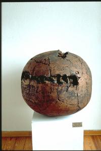 - NOTIZIE STORICO CRITICHE L'opera fu premiata al XXXI° Premio Suzzara (1991).\nL'opera si caratterizza per una superficie scabra e segnata da tratti diversi: graffiti, buchi, ma anche segni fatti con la rotella ed impronte circolari. Su questa superficie si innestano le impronte che sembrano quasi determinate da un mezzo meccanico, ad esprimere in maniera ancor più violenta l'idea di taglio, di lacerazione dolorosa, recuperando con questo atto una poetica il cui caposcuola fu il Fontana dele "Nature" , e ricollegandosi ad Arnaldo Pomodoro.\nCarlos Carlé nasce nel 1928 a Oncativo, in Argentina. I suoi iniziali contatti con la ceramica avvengono nella fabbrica di mattoni refrattari del padre, dove realizza i primi manufatti. Da allora il suo interesse è volto verso i materiali cotti ad alta temperatura, con particolare predilezione per il grès. Verso la fine degli anni Quaranta intraprende, a Buenos Aires, lo studio della ceramica, del disegno e della scultura e aderisce ad Artesanos, primo gruppo di avanguardia nell'Argentina del dopoguerra. Nel 1959 è tra i fondatori del Centro Arte Ceramico Argentina. Opera in diverse fabbriche di ceramica in Argentina, Brasile, Paesi Bassi, Danimarca e Italia, dove si stabilisce nel 1963 e decide di dedicarsi esclusivamente alla scultura. Lavora per circa un anno nel centro ceramico di Vietri sul Mare e in seguito si trasferisce ad Albisola Marina. Le sue opere gli hanno valso dagli anni Cinquanta numerosi riconoscimenti e premi per tutto il mondo. Dal 1972 è Membro titolare dell' Accademia Internazionale della Ceramica a Ginevra. Nel 1998 è stato invitato a realizzare una scultura monumentale in Shigaraki Ceramic Cultural Park in Giappone. E' dedicata a Carlé la "3ª Rassegna di Scultura all'aperto 2000" promossa dall'Assessorato alla Cultura di Padova. Le sue sculture figurano in diversi musei e collezioni, tra cui il Museo Internazionale della Ceramica di Faenza, il Musée National de la Céramique di Sèvres, il North Central Washington Museum di Wenatchee e il Museo Juan B. Castagnino di Rosario.