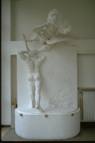 - NOTIZIE STORICO CRITICHE Al XXIX° Premio Suzzara (1989) vinse il premio acquisto.\nQuest'opera ruota attorno ad uno dei grandi temi sacri dell'arte classica. Si tratta di simulacri imponenti e magicamente emotivi, che si articolano in un senso volumetrico e proporzionale dello spazio, che è quasi solidificato nella materia. I livelli della percezione si confondono, dallo stiacciato della figura di Isacco alla potente volumetria di Abramo, al movimento concitato della figura angelica.\nL'artista nasce ad Ostiglia nel 1948
