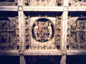 Al centro del soffitto due angeli reggono lo stemma dei Ganzaga-Colonna-Aragona. Agli angoli altri stemmi delle famiglie di Vespasiano Gonzaga.