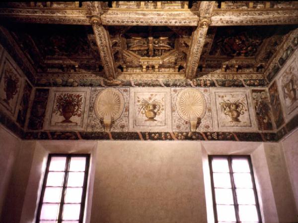 Fregio dipinto. Mensole e ovali in stucco.