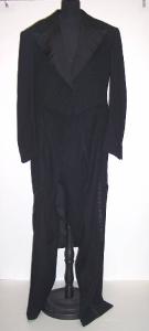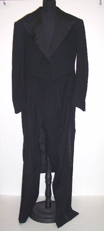 Completo maschile composto da giacca e pantaloni in panno di lana nero.
