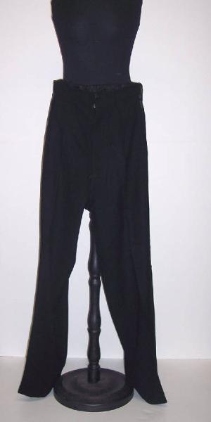 Calzoni, parte del completo, in panno di lana nero foderati in seta nera; banda di seta laterale applicata. Etichetta "Fratelli Mazzon Padova" "data 15-1-1938".