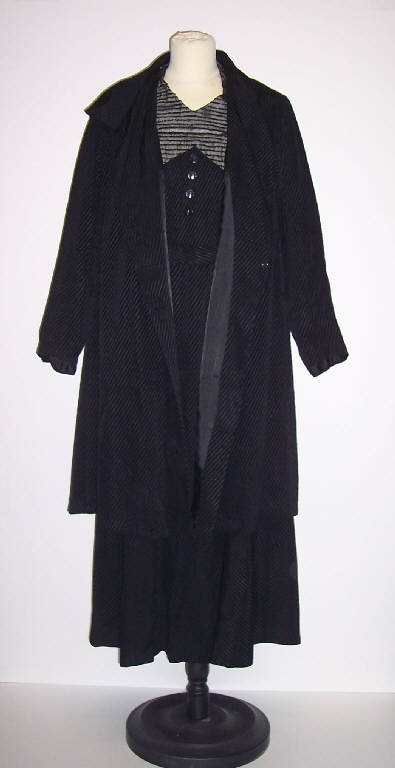 Completo composto da abito e soprabito in seta operata nera.