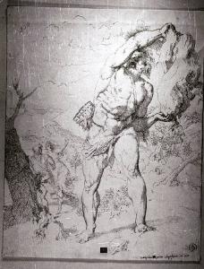 Polifemo scaglia un macigno contro Aci e Galatea