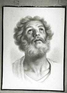 - NOTIZIE STORICO CRITICHE Testa del V° apostolo da sinistra. R. Mangili (1991) ha ipotizzato che i Manini avessero un progetto di pubblicazione di questi disegni, probabilmente a illustrazione di un'opera sul Duomo di Cremona o sul Diotti. Non sono state ritrovate incisioni né citazioni in inventario presso il Museo di Cremona.