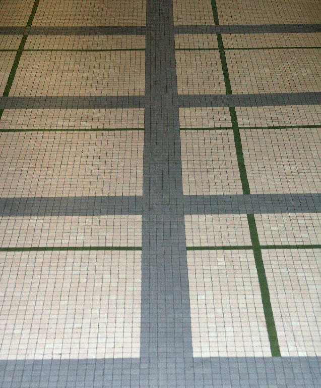 - NOTIZIE STORICO CRITICHE La pavimentazione di questo corridoio è stata eseguita completamente a mosaico, da maestranze specializzate della Ditta Ceramica Ferrari di Cremona. E' una composizione geometrica fatta di riquadri regolari, che si intersecano perpendicolarmente su un fondo chiaro, che rivisita, semplificandoli, spunti presenti nella pittura di Piet Mondrian (Luisa Erba).