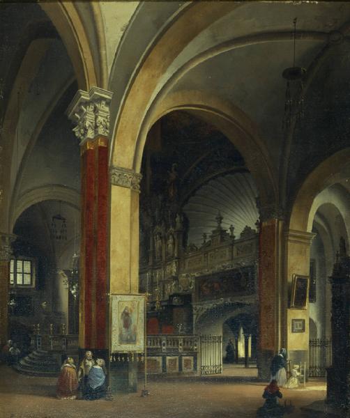 Interno della chiesa di Sant'Eustorgio. Interno della chiesa di Sant'Eustorgio prima dei restauri. Interno della chiesa di Sant'Eustorgio prima dei restauri ottocenteschi