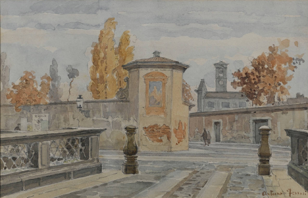 Angolo di via S. Barnaba e via Francesco Sforza nel 1896. Le strade all'incrocio fra via San Barnaba e via Francesco Sforza a Milano nel 1896