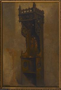 Sant'Ambrogio, stallo del coro. Interno di Sant'Ambrogio a Milano: uno stallo del coro