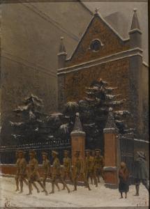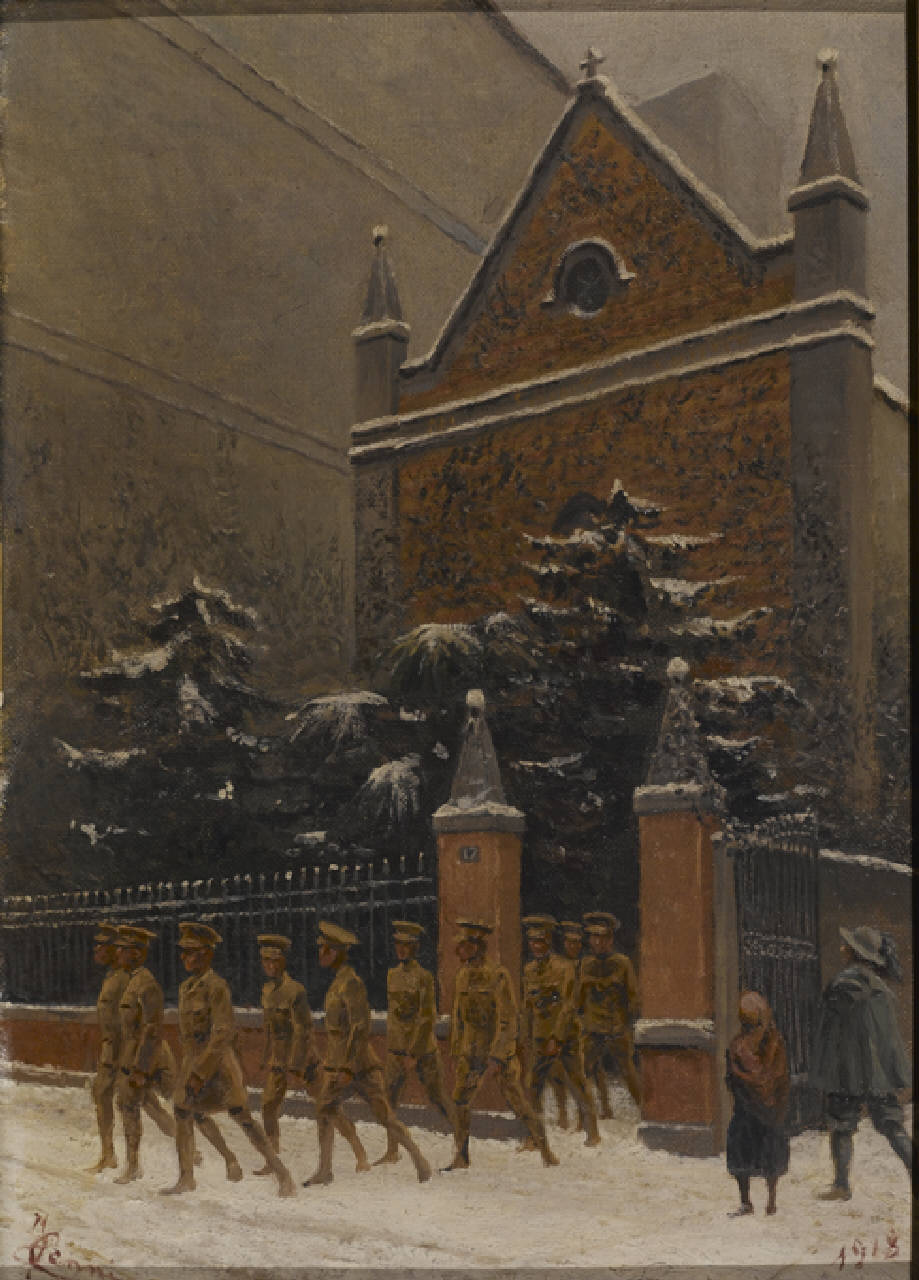Soldati inglesi escono dalla chiesa anglicana di via Solferino. Soldati inglesi escono dalla chiesa anglicana di via Solferino a Milano nell'inverno del 1918