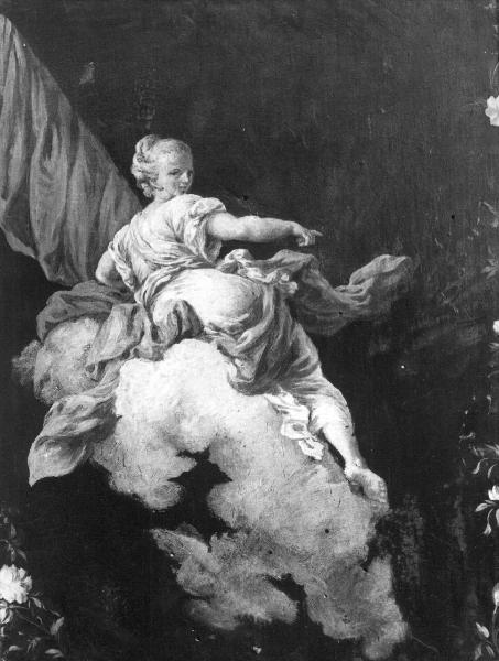 - NOTIZIE STORICO CRITICHE All'interno del nucleo di opere riferibili alla bottega dei Marcola, i nn. P 39, P 40, P 48, P 45, P 52, P 53 si presentano omogenei per le caratteristiche del supporto (un legno opportunamente incurvato), per la scelta di un fondo scuro e per la presenza di una bordura floreale, in gran parte coperta dall'attuale cornice dorata. Si tratta di riferimenti che farebbero pensare alla provenienza da un elemento di arredo o, più probabilmente, da una portantina. Inoltre, a differenza dei nn. P 42 e P 51, già riferiti a Giambattista da Tadini 1828 e 1837 e quindi dalla successiva bibliografia (e ora restituiti a Nicola Marcola), e ai nn. P 43 e P 50, diversi per formato, già riferiti da Tadini a Nicola, e ora a Marco, i pannelli in esame godono di un costante riferimento a Marco, confermato da tutta la critica successiva.\nM. Albertario