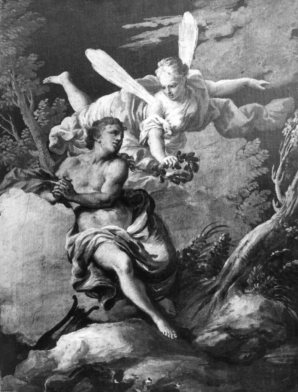 - NOTIZIE STORICO CRITICHE All'interno del nucleo di opere riferibili alla bottega dei Marcola, i nn. P 39, P 40, P 48, P 45, P 52, P 53 si presentano omogenei per le caratteristiche del supporto (un legno opportunamente incurvato), per la scelta di un fondo scuro e per la presenza di una bordura floreale, in gran parte coperta dall'attuale cornice dorata. Si tratta di riferimenti che farebbero pensare alla provenienza da un elemento di arredo o, più probabilmente, da una portantina. Inoltre, a differenza dei nn. P 42 e P 51, già riferiti a Giambattista da Tadini 1828 e 1837 e quindi dalla successiva bibliografia (e ora restituiti a Nicola Marcola), e ai nn. P 43 e P 50, diversi per formato, già riferiti da Tadini a Nicola, e ora a Marco, i pannelli in esame godono di un costante riferimento a Marco, confermato da tutta la critica successiva.\nM. Albertario
