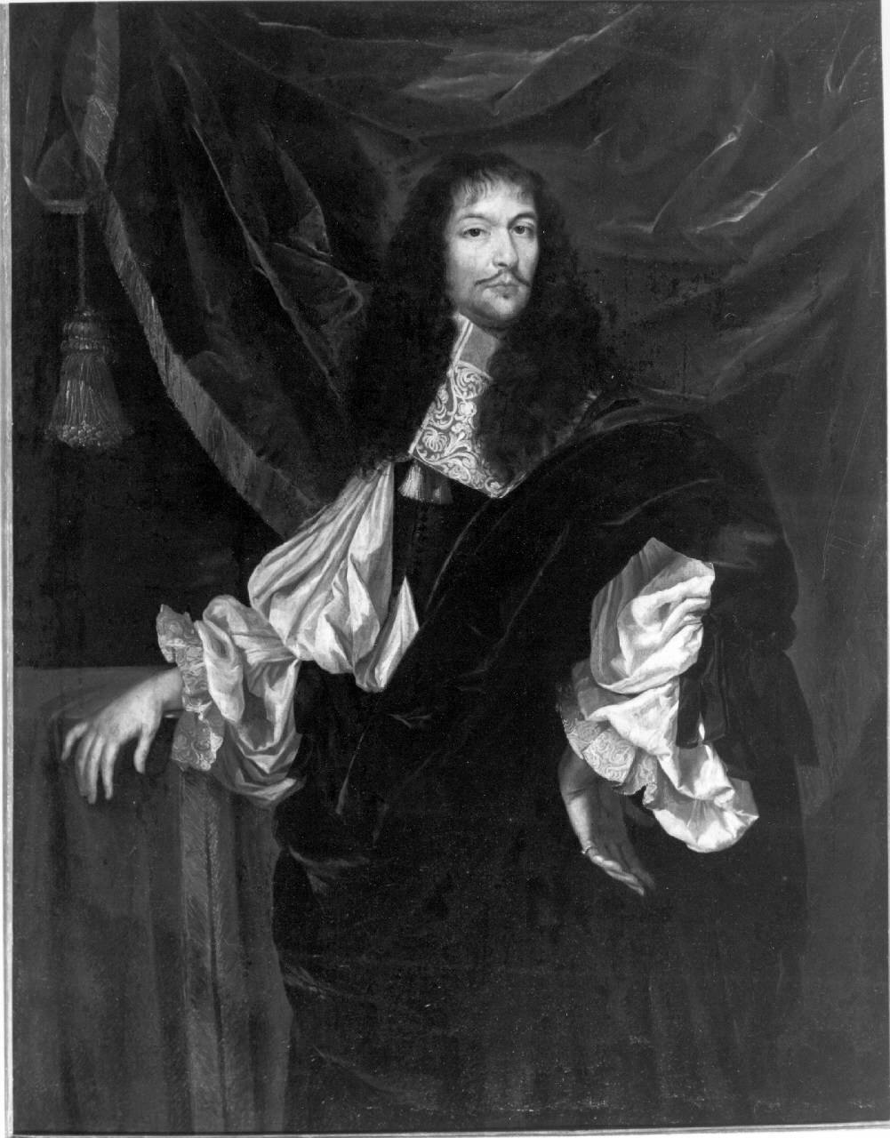 - NOTIZIE STORICO CRITICHE Questo dipinto e il suo pendant (P 486) potrebbero essere identificati con i nn. 2-3 dell'elenco delle opere in vendita proposte da Felice Zitti a Felice Martinoni, con una improbabile identificazione con "La signora Lucia Taglietti e sposo nob. Alessio Martinoni". Nella stessa lettera lo Zitti attesta che "sono due Charron del 1663". \nNello stesso anno, Mauro Pellicioli stende una relazione (13 dicembre 1928, ai nn. 8 e 9) forse in vista della vendita dalla quale si evince una differente (e apparentemente più completa) lettura dell'iscrizione come "C. LORRON FECIT 1633". In quell'elenco, redatto prima dell'intervento di restauro del 1947, l'iscrizione doveva essere ben leggibile, e non credo che possano sussistere dubbi in merito all'identificazione dei due dipinti in esame con i nn. 8 e 9. \nL'iscrizione è riportata ancora in un terzo elenco redatto (un documento non firmato, datato a matita, ai nn. 6-7) dopo l'intervento di foderatura. \nInfine nell'inventario dei beni allegato al testamento (18 febbraio 1954) l'iscrizione è data per esistente (forse era ancora leggibile sotto la foderatura?). Non ha fondamento quindi il riferimento a Nicolas De Largillière attribuito alla valutazione di Pelliccioli dall'anonimo estensore dell'inventario Pinacoteca 1966. (Quest'ultimo peraltro è evocato nella lettera di Pelliccioli, ma solo a proposito dei ritratti di uomo in armatura e dama, P 487. P 488) Il riferimento sarà però ribadito da Angela Ottino Della Chiesa (Comunicazione orale registrata in Pinacoteca 1966). Il riferimento a Nicolas de Largilliere è stato definitivamente escluso da Xavier Salmon (comunicazione orale, 2001).\nNon è mai stata indagata la direzione suggerita dall'iscrizione, Charron o Lorron, che non risulta di facile scioglimento e non ora non è più leggibile.\nIl personaggio mostra mostra una certa somiglianza con Carlo I d'Inghilterra (Dunfermline 1600 - Londra 1649) , che troverebbe conferma nell'identificazione di Enrichetta Maria di Borbone nel ritratto gemello sugerita da Maria Ines Aliverti. In questo caso la data delle nozze - 1625 suggerirebbe un termine post-quem che orienterebbe verso una datazione agli anni trenta del Seicento piuttosto che agli anni Sessanta del secolo. Si noti però che l'uomo non porta la sciarpa azzura \nMarco Albertario