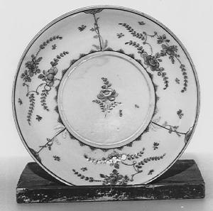 Piattini decorati a ramoscelli verdi con filettature oro.
