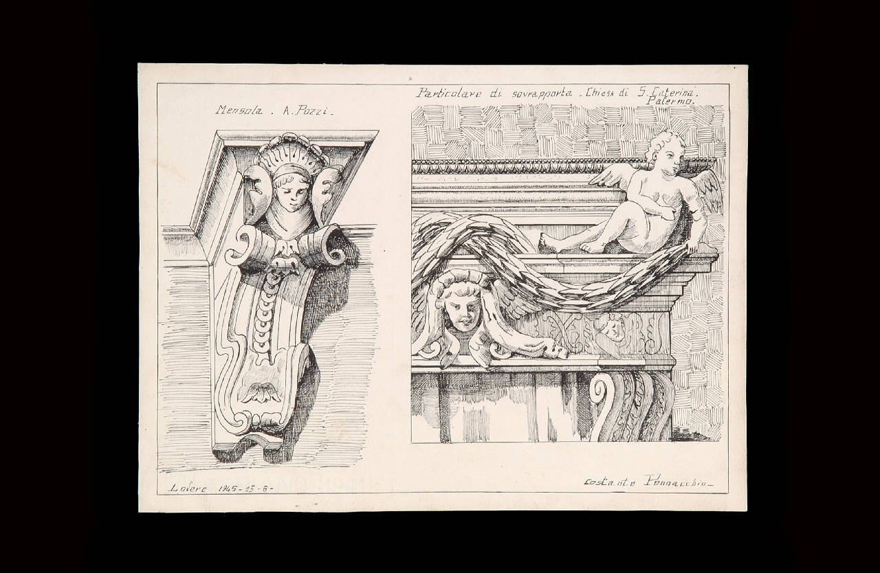 Mensola A. Pozzi- Particolare di sovrapporta Chiesa di S. Caterina a Palermo. Mensola e ornamentazione di sovrapporta