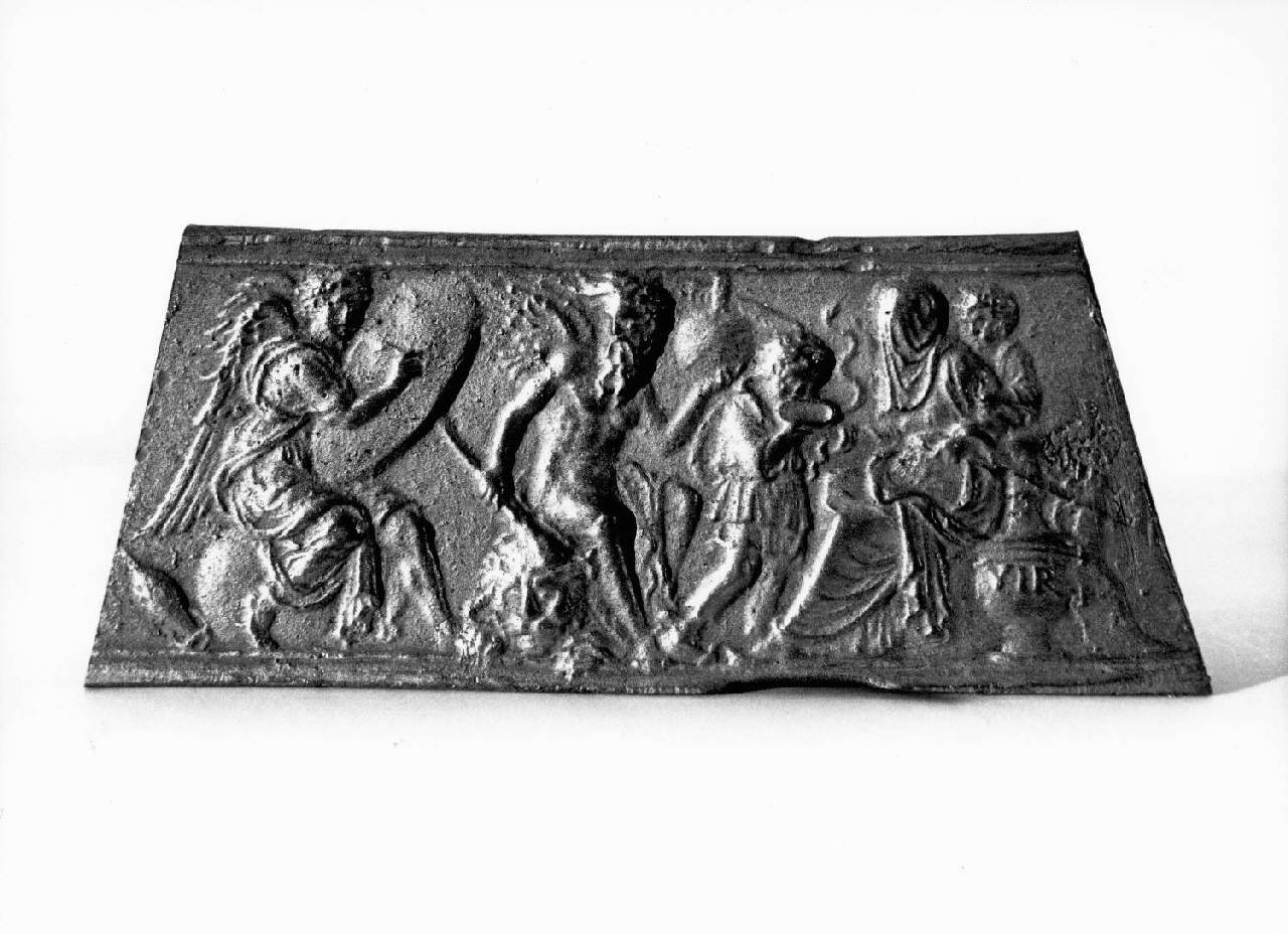 - NOTIZIE STORICO CRITICHE Questa placchetta insieme alle numero di inventario 2928 (E 4) e 2926 (E 3) facevano parte della decorazione del medesimo cofanetto.