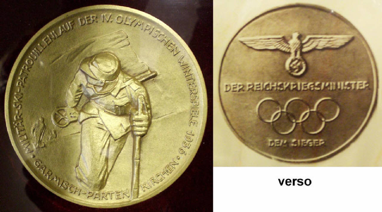 - NOTIZIE STORICO CRITICHE Medaglia che attesta la prima posizione guadagnata da Stefano Sertorelli in una gara sciistica in occasione delle Olimpiadi invernali di Garmisch Parten Kirchen del 1936.