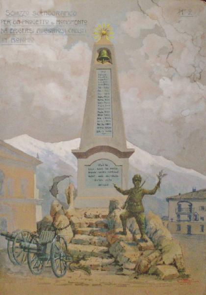 - NOTIZIE STORICO CRITICHE Si tratta di un bozzetto per un progetto di monumento ai caduti da realizzare in piazza del Kuerc a Bormio\nCfr. inv. n. 3437