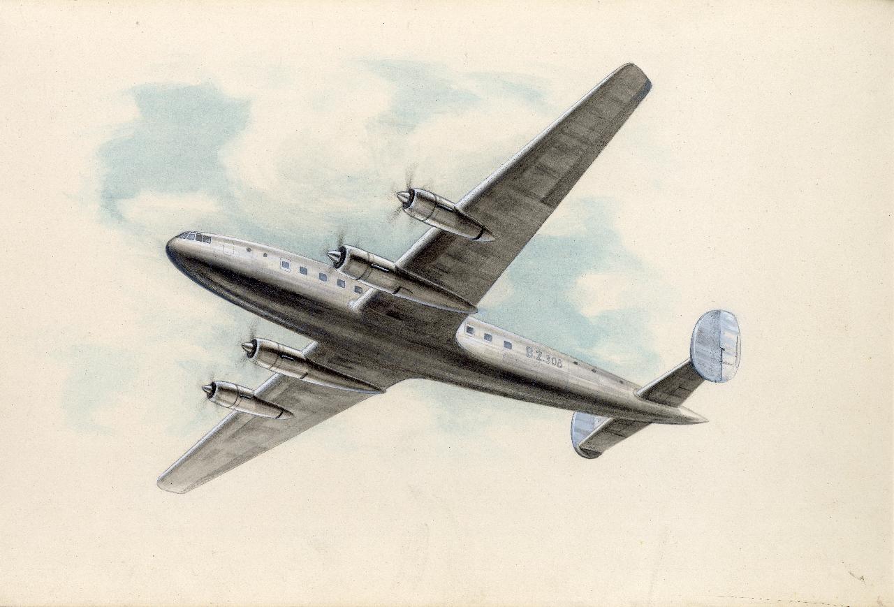 Bozzetto dell'aereo BZ 308 per campagna pubblicitaria della Società Breda. aereo