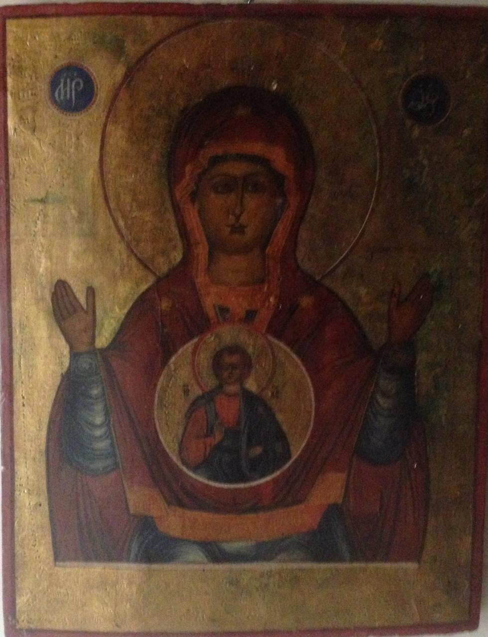 Icona russa raffigurante la Madre di Dio orante con al centro, in un tondo oro, il Cristo giovinetto, a mezzo busto, che benedice con la mano destra. Le tre stelle che compaiono sul capo e sulle spalle della Vergine sono un antico simbolo siriaco di verginità (era ricamato sul velo nuziale delle principesse) e sono un simbolo della castità di Maria (Aeiparthenos), la sua verginità perpetua prima, durante e dopo il parto.